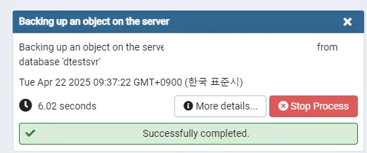 - Filename : 백업 파일 저장 경로 입력 (예: C:\Users\Test\Documents\test_backup.backup)