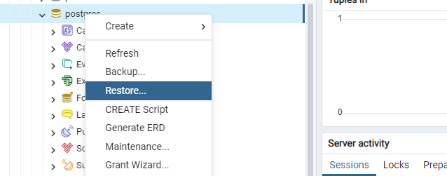 pgAdmin을 통해 GUI로 백업/복원을 해보았다. 다음엔 CLI 도구를 사용해서도 진행해 보아야겠다.