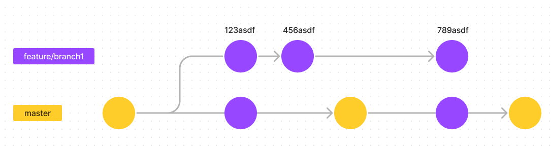 feature/branch1 브랜치의 커밋 중 123asdf와 789asdf 커밋을 현재의 master 브랜치에서 적용하고 싶다.